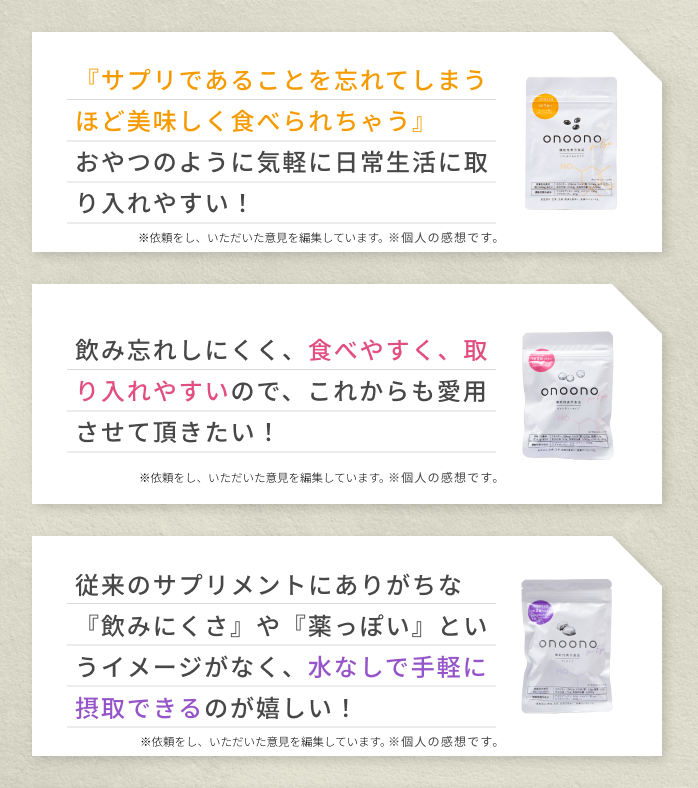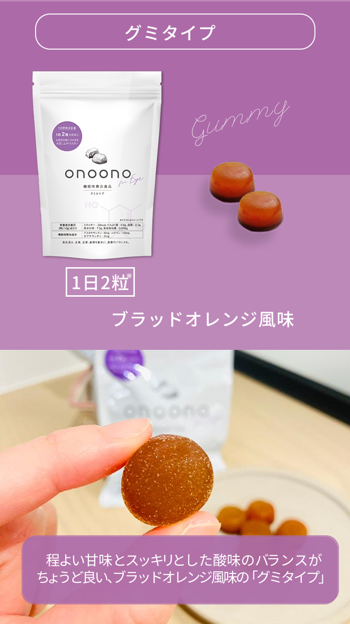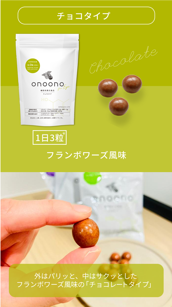 「onoono for eye」は誰もが取り入れやすいお菓子タイプなだけでなく、