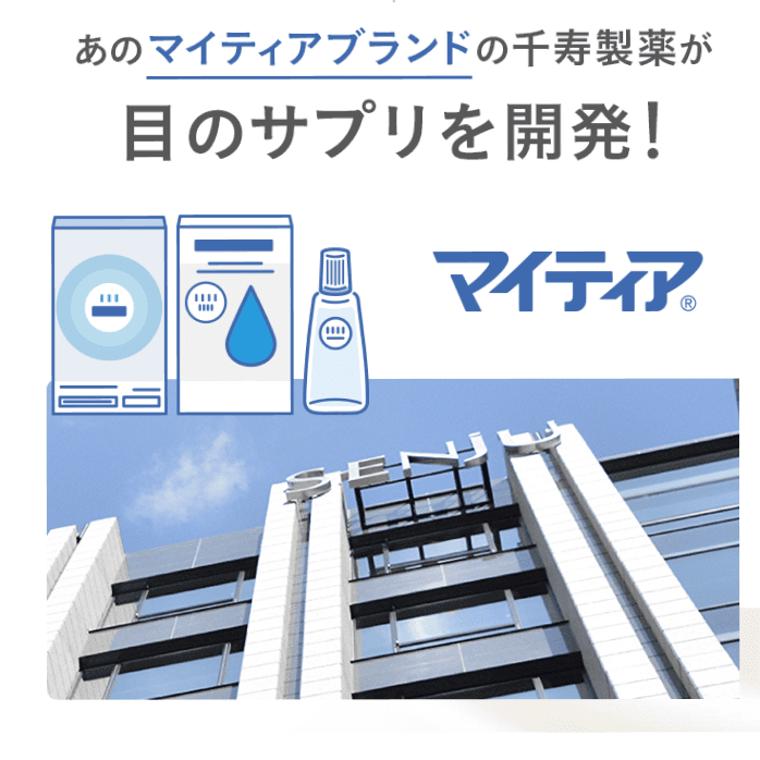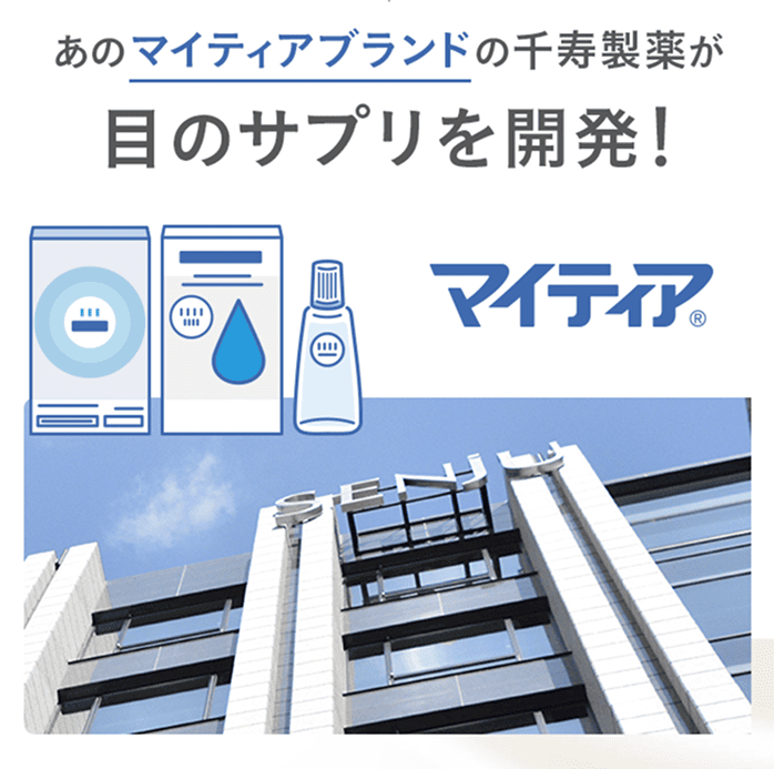 そんな今までにない「目の対策」に特化した “お菓子のようなサプリメント” を開発したのは、あの目薬の “マイティア” でお馴染みの製薬会社「千寿製薬」。