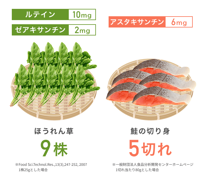 「ルテイン(10mg)」と「ゼアキサンチン(2mg)」。