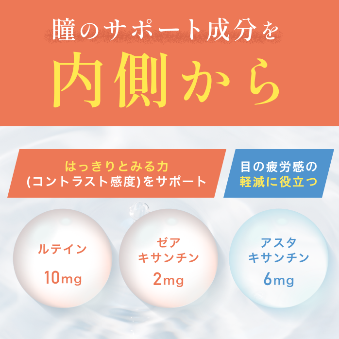 目を内側からサポートしてくれる成分がたっぷりと配合されているだけでなく