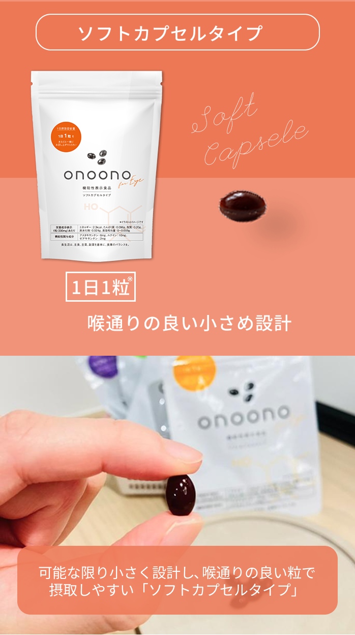 そんな食べる目のサプリメントが、「千寿製薬株式会社」が開発した「onoono for eye(オノオノ フォー アイ)」です。