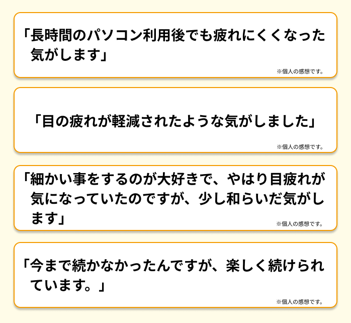 実際に既に「onoono for eye」を習慣化して取り入れている方々からは、